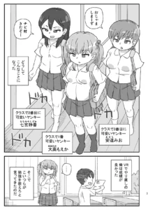 成績がいい小村に目をつけたクラスのトップ3たち(大高もえか、七宮静香、安達みお)は、勉強を教えてもらうべく小村の家へと押しかける。もえかは勝手にピザを注文して支払いを押し付けてくるという横暴さ。しかし、小村の家は当然彼のテリトリーなのである。早々に催眠アプリで3人を眠らせていく。